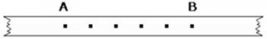 - จากรูปแสดงจุดห่างสม่ำเสมอกันบนแถบกระดาษที่ผ่านเครื่องเคาะสัญญาณเวลา 50 ครั้ง/วินาที ข้อความใดถูกต้องสำหรับการเคลื่อนที่นี้